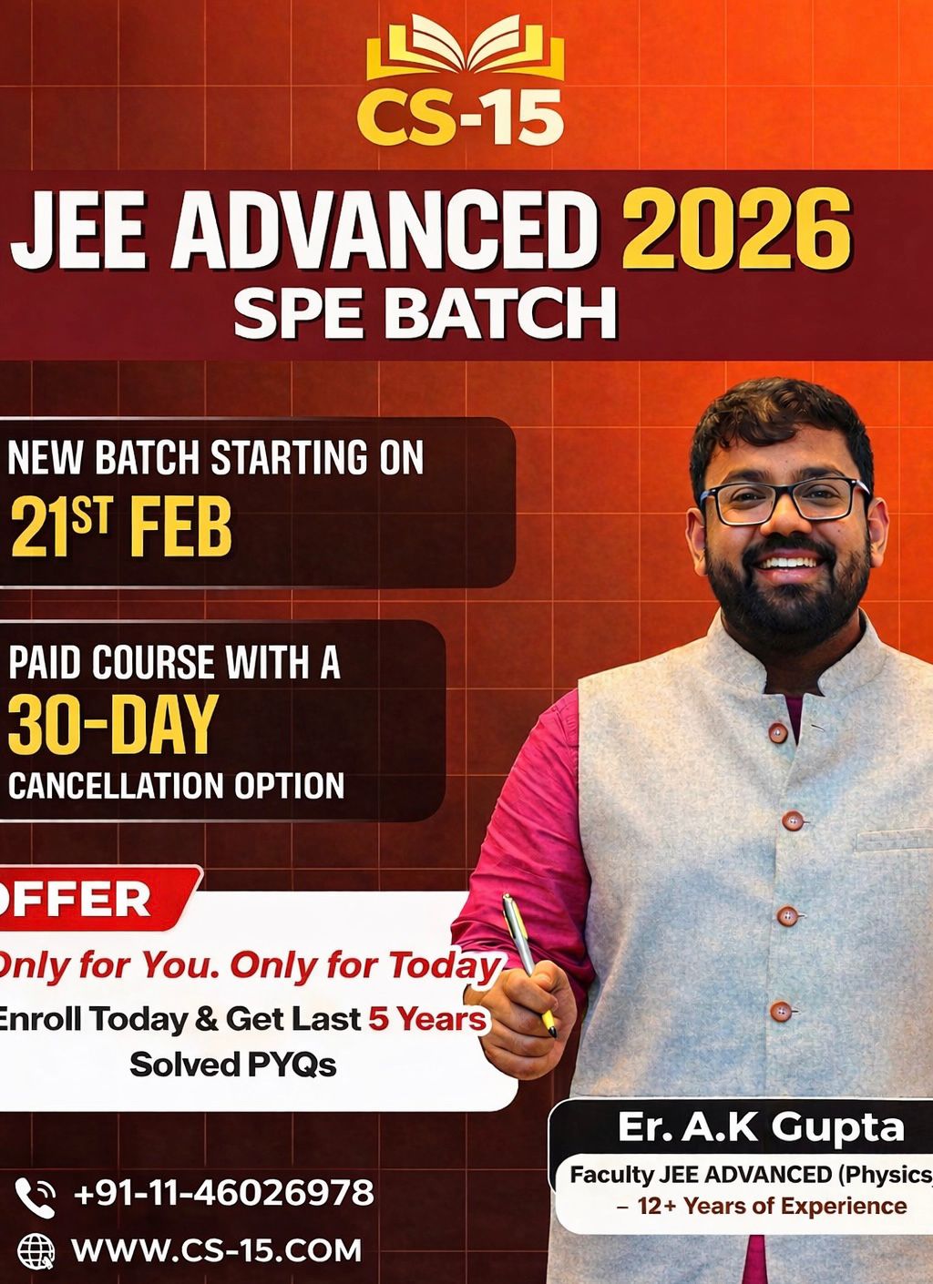 As awareness grows about the benefits of early preparation, proactive parents and ambitious students are starting earlier than ever. With IIT-JEE attempts now limited to two, the stakes have become even higher. CS-15 recognizes this and offers a head start to help students excel in these demanding exams.
